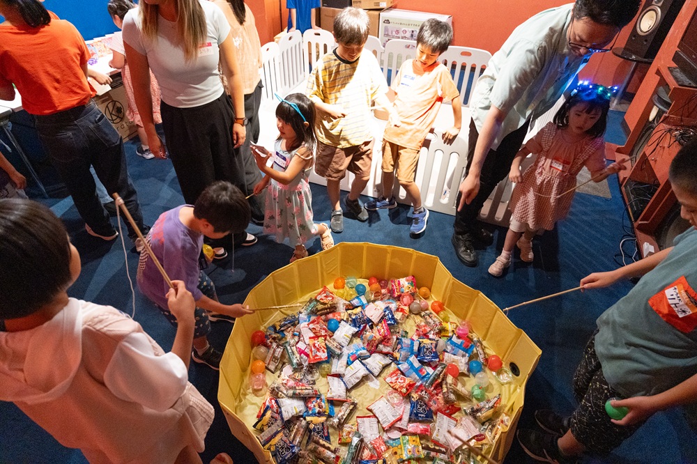 Family Dayの様子、手作りのおかし釣りコーナー