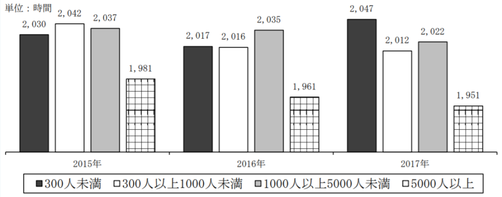 長時間労働の是正や有給休暇取得の促進など、ワークライフバランスを実現し、働きやすい環境の整備が求められているのです。実際に、大企業を中心に労働者の総労働時間は減少傾向にあります。しかし、従業員300人未満の企業では逆に労働時間は増加しているのです。