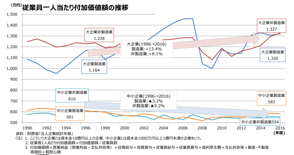 労働生産性を向上させて、長期的な成長戦略を描くことが求められている中小企業。それでは、中小企業の労働生産性はどのような状況なのでしょうか。